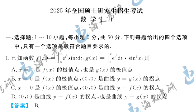 以上就是海天考研网为各位考生整理的2025考研数学一真题及答案解析汇总,仅限参考。持续为考研学子更新其他考研科目考研真题及答案解析,各位考生可以根据自身需要关注收藏,及时查看完整版2025考研真题及答案解析。