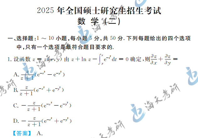 以上就是海天考研网为各位考生整理的2025全国硕士研究生考试数学二真题,仅限参考。持续为考研学子更新其他考研科目考研真题及答案解析,各位考生可以根据自身需要关注收藏,及时查看完整版2025考研真题及答案解析。